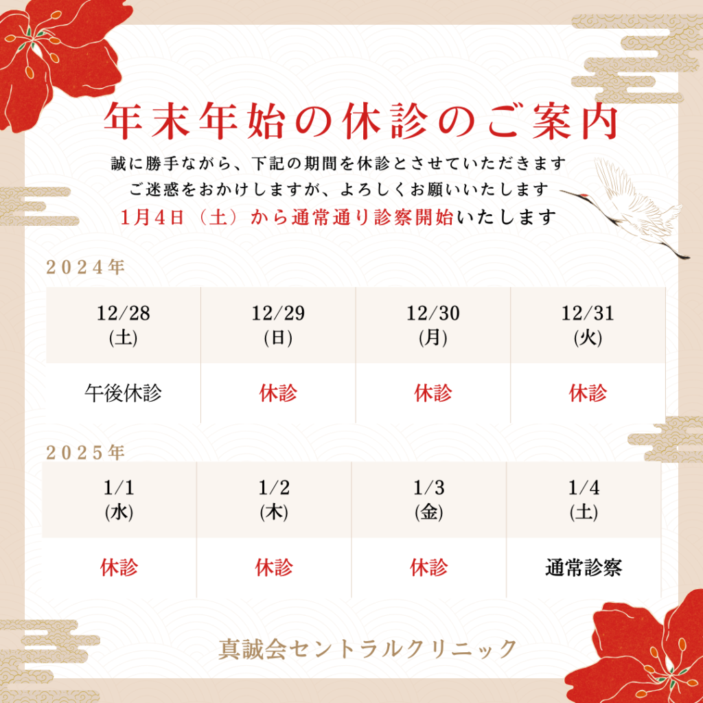 2024年12月29日から2025年1月3日まで休診
