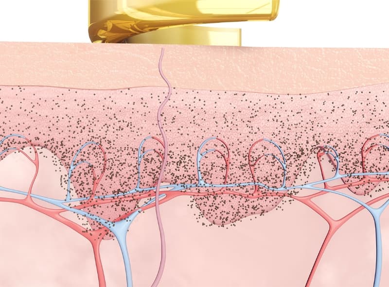メラニン色素の粒子をより微小に壊し、細かくなったメラニン色素は、マクロファージという食作用を持つ細胞によって体の外に排除されていきます。メラニン色素の粒子が細かいほど、マクロファージの貧食も活発になるため、これまでのレーザー施術では取り切れなかったしみまで早く除去できるようになりました。