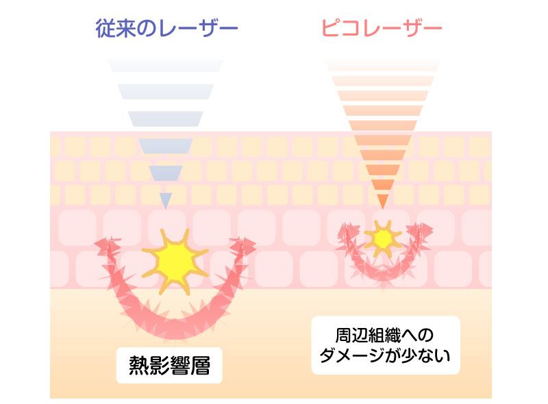 ピコレーザーの「ピコ」とは、レーザーが照射される時間の単位で、「ピコ秒=1兆分の1秒」を意味します。